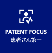 私たちは、いかなるときも患者さんを最優先に考えて行動します。患者さん第一を旨とし、患者さんやお客さま、医療のあり方について理解を深め、解決策を創出します。